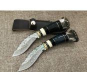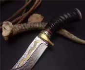 世纪彩虹雨滴纹大马士革黄羊角猎刀