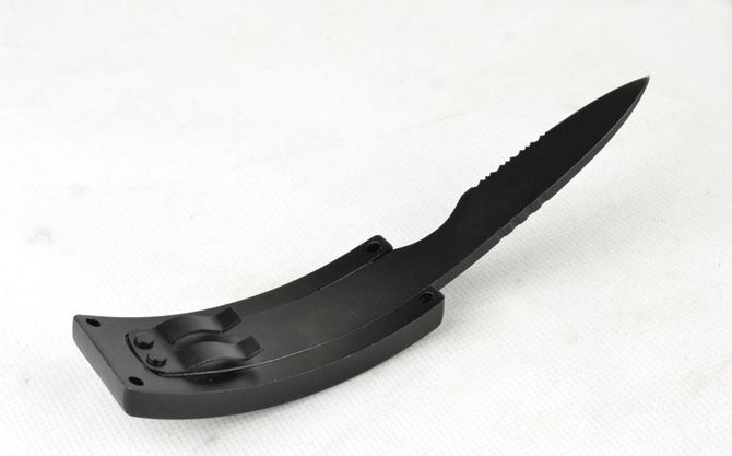 皮带全长:140cm 刀刃长:6cm 刃宽:2cm 刃厚:0.38cm 刃材:420 硬度:54HRC 表面:氧化 柄材:合金 柄长:9.6cm 重量:281克(含包装物) 其他: 半齿开锋 品质:高品质,出口转内销 包装:原装包装 每套包含:尼龙带一条,小刀一把,活动夹子一个 使用方法:先根据自身的腰围用活动夹子固定好,再将皮带头的扣子扣住夹子上的圆孔