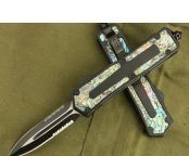 双锋半齿圣甲虫-鲍鱼壳珍藏版(黑色) 开启长度:22CM 合起长度:13.5CM 刃 厚:0.3CM 硬 度:57 HRC 刃 材:440c 表 面:发黑 把 手:航空铝合金+鲍鱼 壳净 重:220克(整刀) 毛 重:300克(含包装物) 开 合:双动作,直推开关,自动弹出和收回(刀头比较牢固,只有很轻微的摇动) 包 装:耐磨专用战术尼龙套。 口袋刀夹:弹簧刀夹玻璃敲击器:钨质玻璃敲击