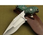 米克—SLCC梦魔 全长:20cm 刃长:13.5cm 柄长:6cm 刃厚:5.3mm 刃宽: 4.5cm 刃材: 7Cr17 柄材: 米卡塔 硬度: 58HRC 净重:255克 毛重:340克(含包装物) 表面处理:全手工砂光