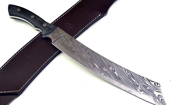 全 长:505mm 刃 长:355mm 柄 长:150mm 刃 宽:55mm 刃 厚:5.5mm 刃 材:5Cr13Mov 重 量:950克(含包装) 硬 度:55HRC 表 面:腐蚀纹 柄 材:G10柄 锁 型:定锁 其 他:配纸盒和皮套