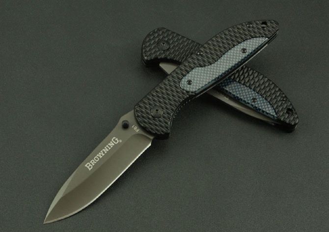 勃朗宁F61战术折刀 全 长:225mm 刃 长:95mm 柄 长:130mm 刃 宽:21mm 刃 厚:2.8mm 刃 材:3Cr13Mov 重 量:155g(含包装) 硬 度:55HRC 表 面:镀钛 柄 材:铝 锁 型:线锁
