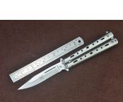 蝴蝶沙钢甩刀 全 长:22.6cm 刃 长:9cm 柄 长:12.3cm 刃 宽:1.9cm 刃 厚:2.8mm 刃 材:3Cr13Mov 重 量:158g(含包装) 硬 度:54HRC 表 面:砂光 柄 材:砂光 包 装:尼龙套