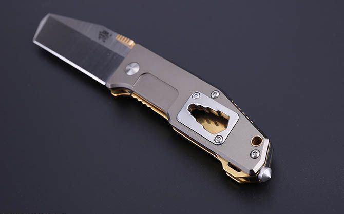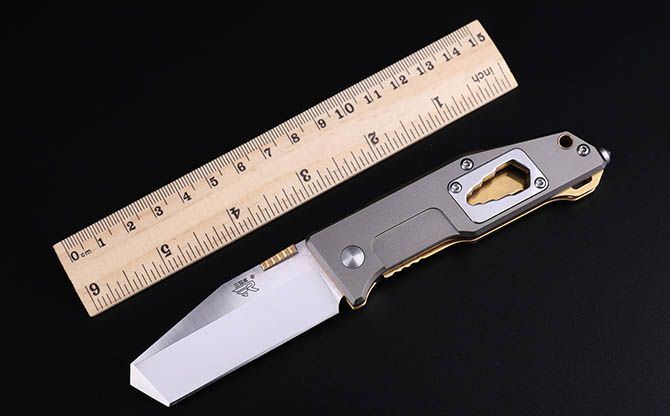三刃木7046LTX战术折刀 【全长】16.3cm 【刃长】6.6cm 【刃宽】2.6cm 【刃厚】2.5mm 【刃材】8Cr14MoV 【表面】钢本色 【硬度】59HRC+ 【柄长】9.3cm 【柄材】8Cr14,灰色铝氧化+金钛(带有背夹) 【重量】93克(含包装) 【包装】彩盒 【锁型】无锁