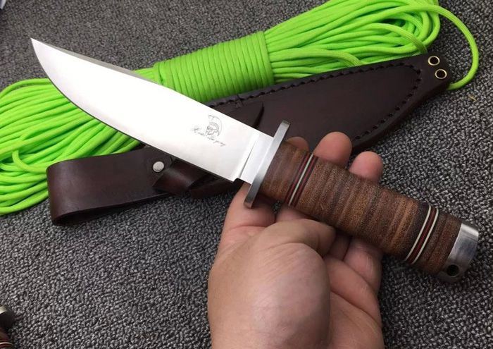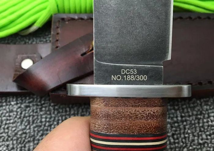 小鲁工海神小博弈直刀 全 长:268mm 刀 长:150mm 刃 材:DC53 硬 度:59HRC 表 面:钢本/沧桑石洗 刃 厚:6mm 柄 长:118mm 柄 材:牛皮