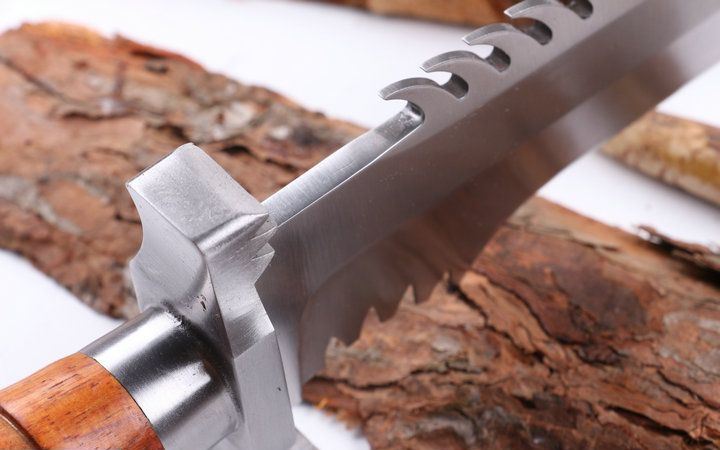 柄材: 加厚钢头护手+防滑木柄,刀背带齿