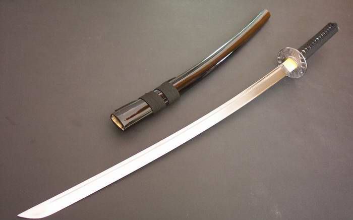 杀死比尔黑武士太刀 全长 (CM):101 刃长 (CM):69 柄长 (CM):29 刃宽 (CM):3.2 刃厚 (CM):0.75 重量(G):1500 刃区硬度(HRC):58 刀身处理:十道手工研磨 锻造工艺:高碳钢锻打 刃纹: 无 刃材:高碳钢 柄型:直柄形 柄材:珍珠鲨鱼皮 鞘材:青皮木 附带:棉质刀袋 备注:手工产品可能存在少许误差