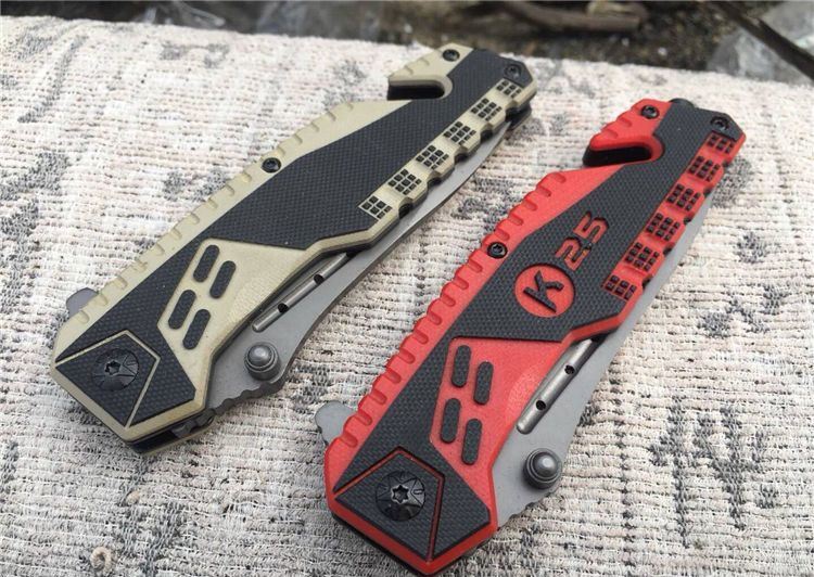 外贸原单025折刀 全长:22.0cm 刃长:9.2cm 柄长:12.8cm 刃厚:0.59cm 刃宽:3.0cm 刃材:8CR18MOV 柄材:全钢 硬度:58HRC 净重:330克(含包装) 锁定:线锁