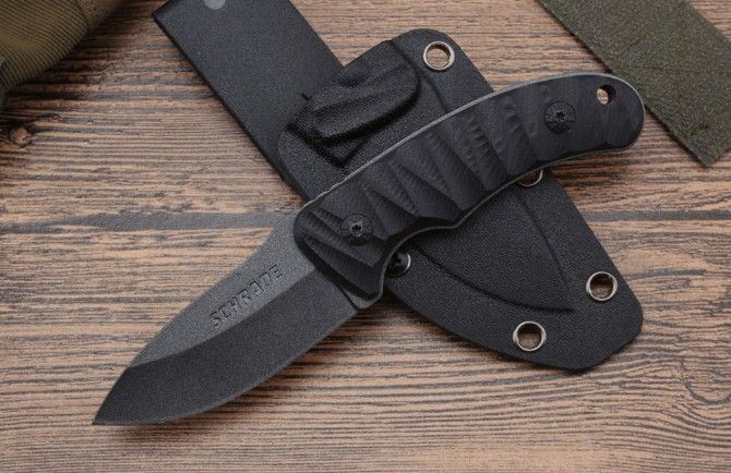 施拉德Schrade极端帝国野战求生直刀 全长:159mm 刃长:69mm 柄长:93mm 刃宽:29mm 刃厚:033mm 刃材:8Cr14Mov 重量:152g(含包装) 硬度:58HRC{真空热处理) 表面:喷砂 柄材:一体钢+G10(手感柔软舒适、防滑) 刀鞘:k鞘