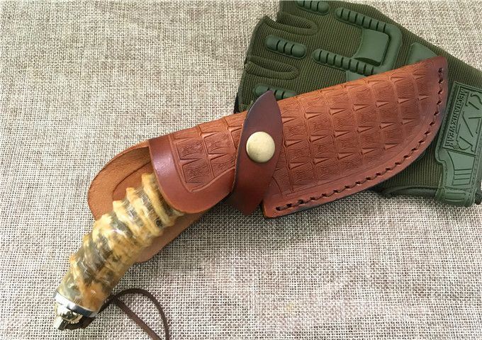 五星大马士革小直刀 全 长: 23cm 刃 长: 11.1cm 柄 长: 10.5cm 刃 厚: 4.2mm 刃 宽: 4.3cm 刃 材:正品进口Vg10大马士革 硬 度: 59-60HRC 重 量: 约400克(含包装) 表 面: 锻打祥云花纹原色 柄 材:天然羊角或鹿角 配 送:高级礼品盒+原装高档皮套 彩用进口大马士革钢作刀刃,锻打祥云花纹朵朵饱满,精选天然黄羊角镶牛角作手柄,经打磨抛光后棱角自然手感一流