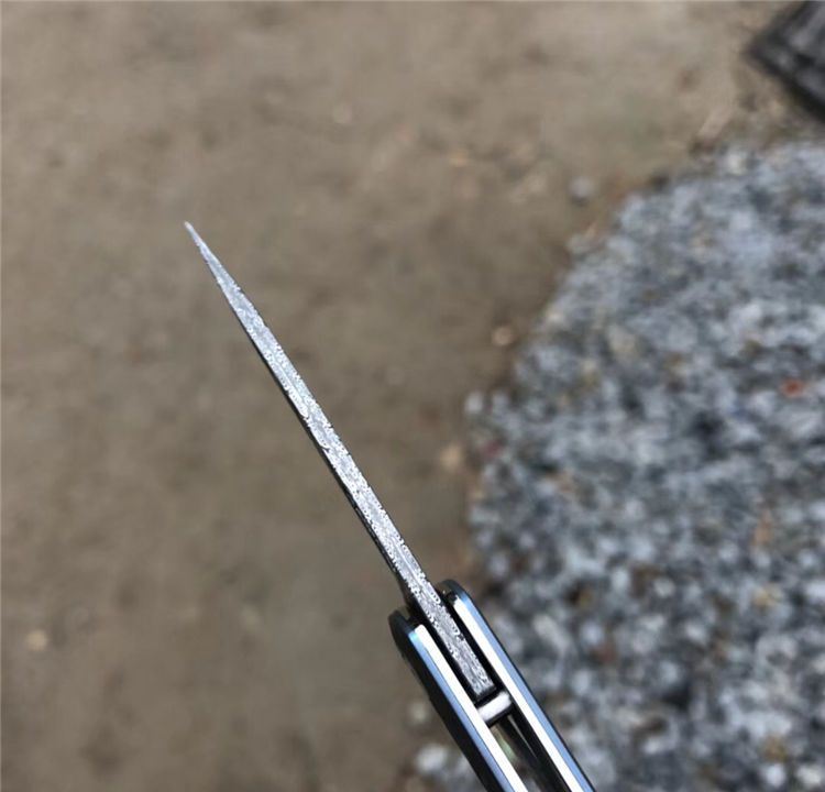 小花生瑞粉大马士革折刀,刀刃为火焰纹瑞典进口粉末大马士革钢刀刃,手柄采用TC4钛合金,表面手工雕花,整体上档次,收藏送礼不二之选。整刀手感出色,各配件都是精密线切割开料,开合紧凑,装配工艺精湛!