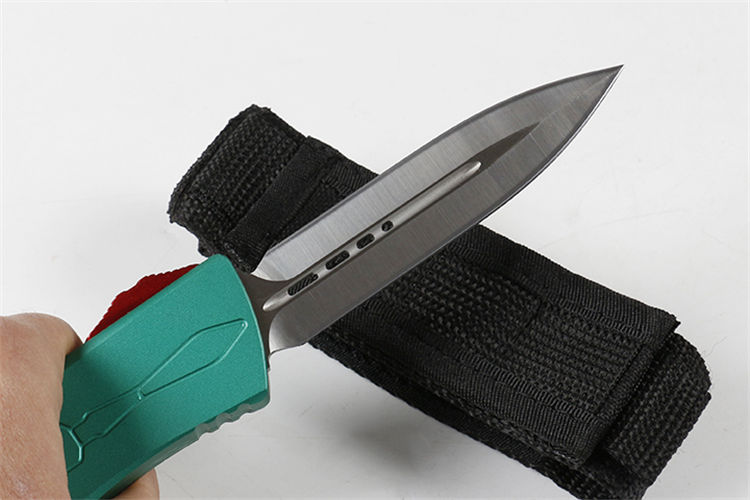 微技术赏金A10大龙直出跳刀 品牌:MICROTECH 美国微技术 全长:24.5CM 刃长:9.5CM 柄长:15.0CM 刃宽:2.1CM 刃厚:0.3CM 刀刃材质:7CR17灰钛加石洗处理. 尖头沙光处理 柄材:铝合金镀绿钛 刀型:直跳 锁定类型:按钮锁 重量:250克(含包装) 附件:彩盒,送拆刀工具 整刀用CNC,电脑锣,线切割制作而成,手工,精密度非常高,绝对不会缩头,很值得收藏的一把刀